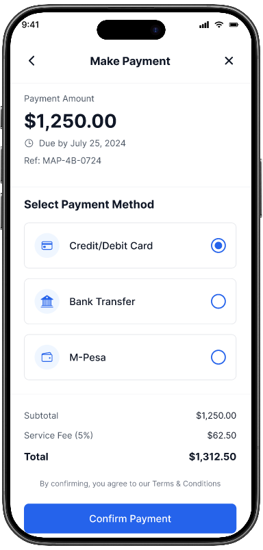 The goal was to design a modern, clean, and functional tenant/property management tool - particularly suited for the African market - featuring real-time rent tracking, digital receipts, payment integration (e.g. Mpesa), and smart dashboards.